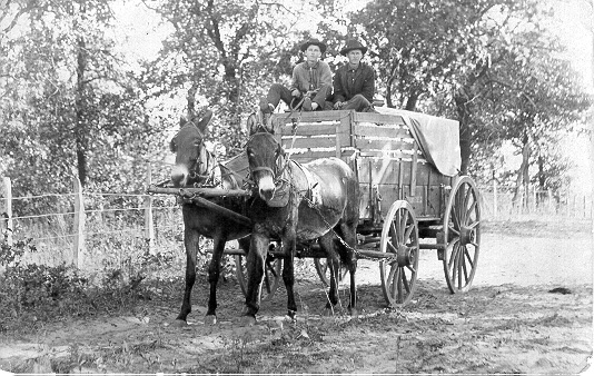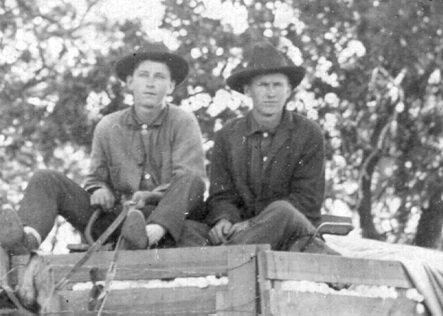 Amberst Midgett (right), Allen's father, with his brother, Chesley Midgett, on a cotton wagon