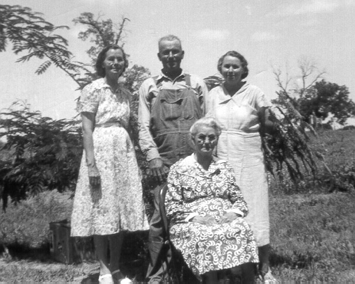 (standing from left): Ida (Midgett) Clark, Fulton Midgett, Ethel (Midgett) Atchison (sitting in front): Sarah Francis (Aldridge) Midgett