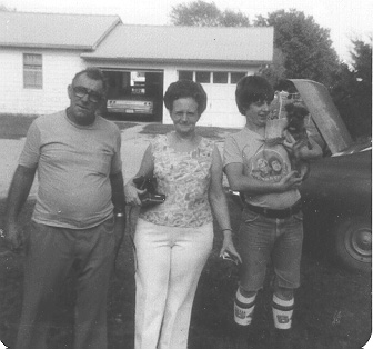 Allen with his third wife, Bernice, and stepson Kenny Collett