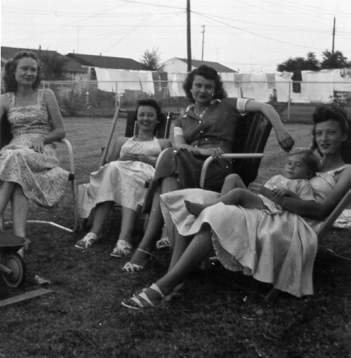 (from the left): Virginia (Short) Midgett, Lola Short, Irene (Short) Hughes and Goldie (Short) Purcell holding Frank Purcell, Jr.